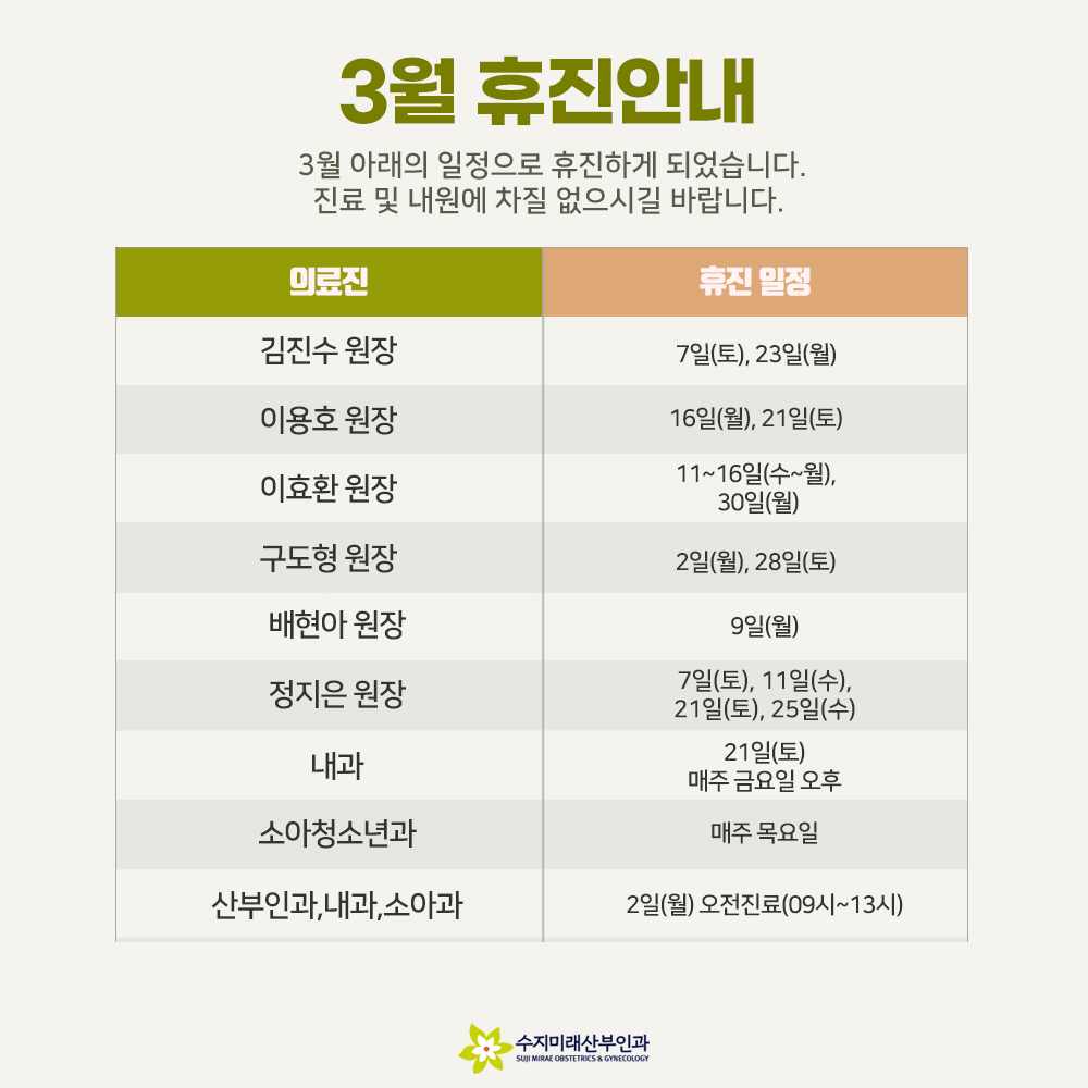 매주 금요일 오후 휴진, 일요일, 공휴일 휴진