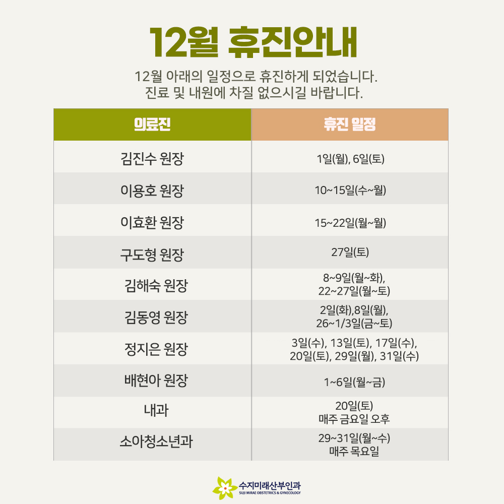 매주 금요일 오후 휴진, 일요일, 공휴일 휴진