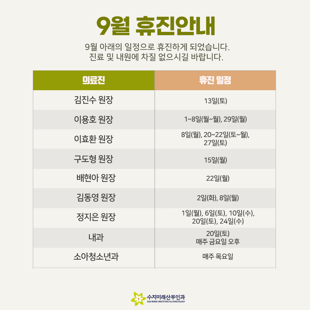 용인산부인과 수지미래산부인과 9월 휴진안내